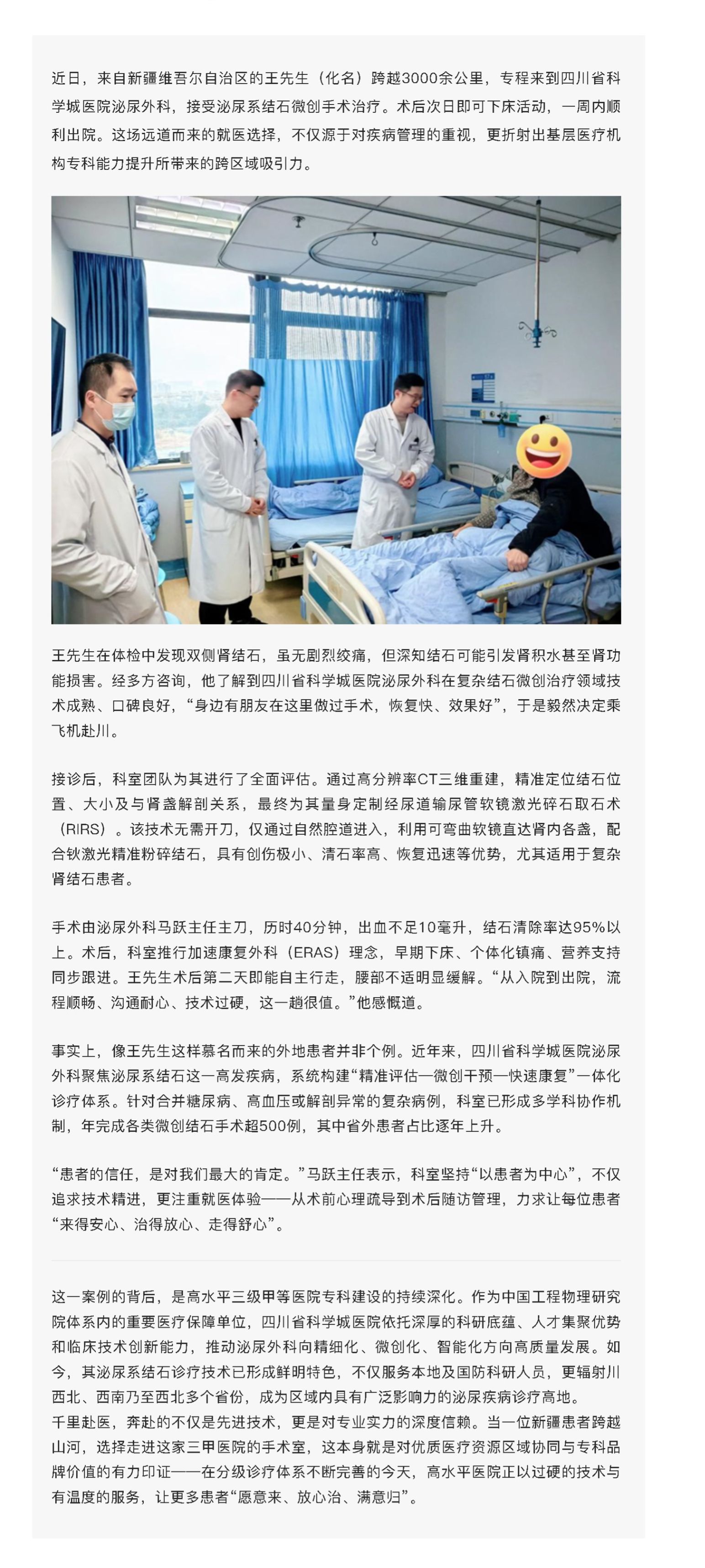 【科医一线】新疆患者千里赴川求医 科医泌尿微创技术获信赖