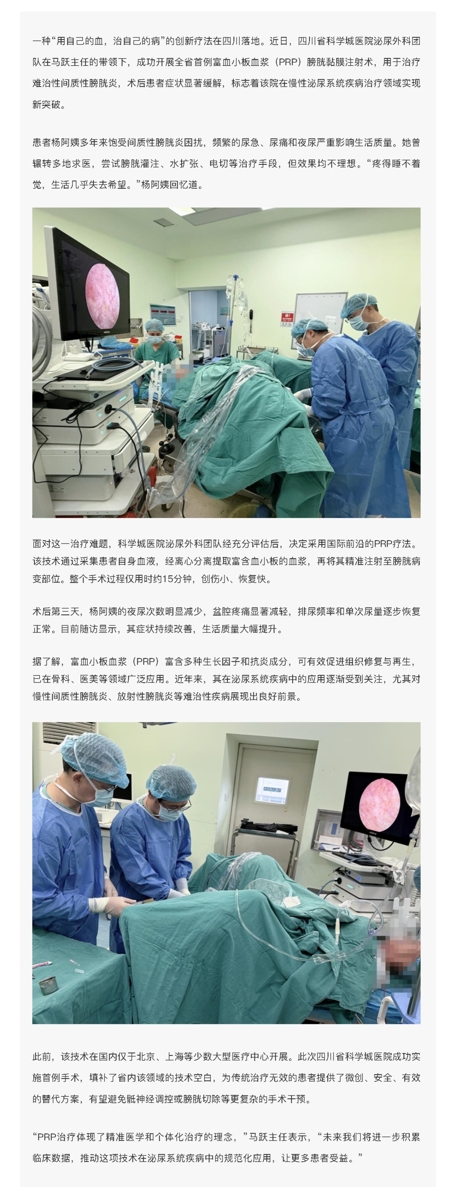 【科医一线】填补省内空白!自体血治疗间质性膀胱炎在科学城医院成功实施