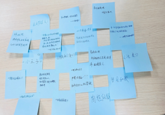 趣味互动环节同样精彩纷呈,“猜书名”“书中金句接龙” 等游戏让现场欢声笑语不断。团员们在轻松愉悦的氛围中重温经典片段、巩固阅读记忆,更在团队协作中拉近彼此距离,展现出团结协作、积极向上的青春风貌。活动尾声的 “好书推荐墙” 环节温暖而有力量,每位团员写下心仪书籍与推荐语,既有专业领域的实用读物,也有慰藉心灵的人文经典,共同构筑起一面兼具 “专业温度” 与 “思想厚度” 的书香墙,成为团员间互学互鉴、共同进步的精神纽带。