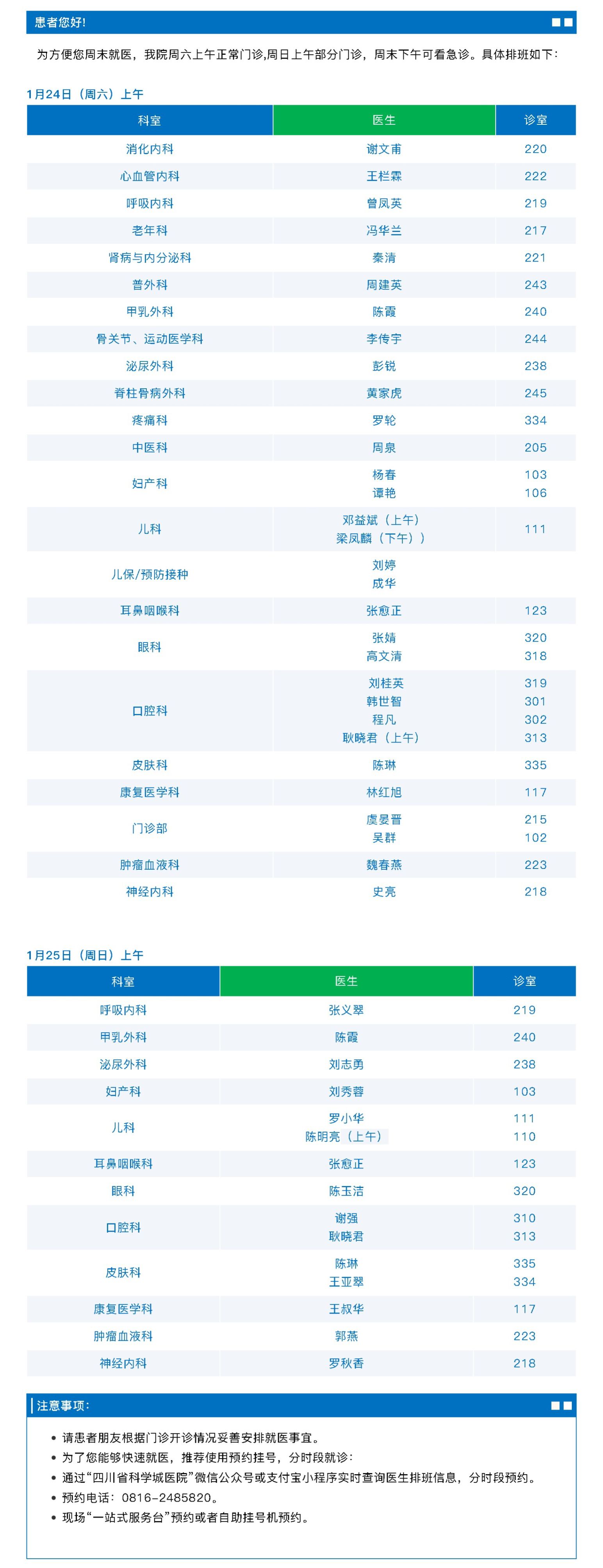 绵阳中心医院专家下周门诊(3.23-3.27)丨周末门诊排班情况