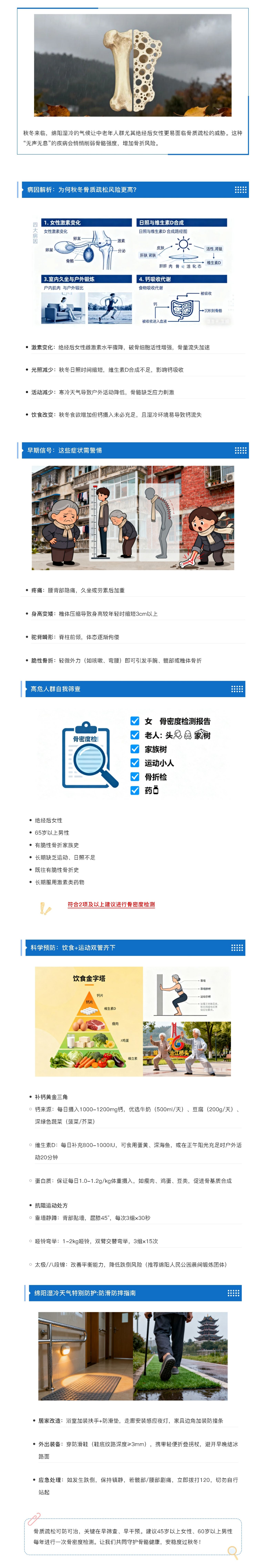 【科医科普】秋冬跌倒风险高!当心“沉默的骨骼杀手”骨质疏松悄然来袭