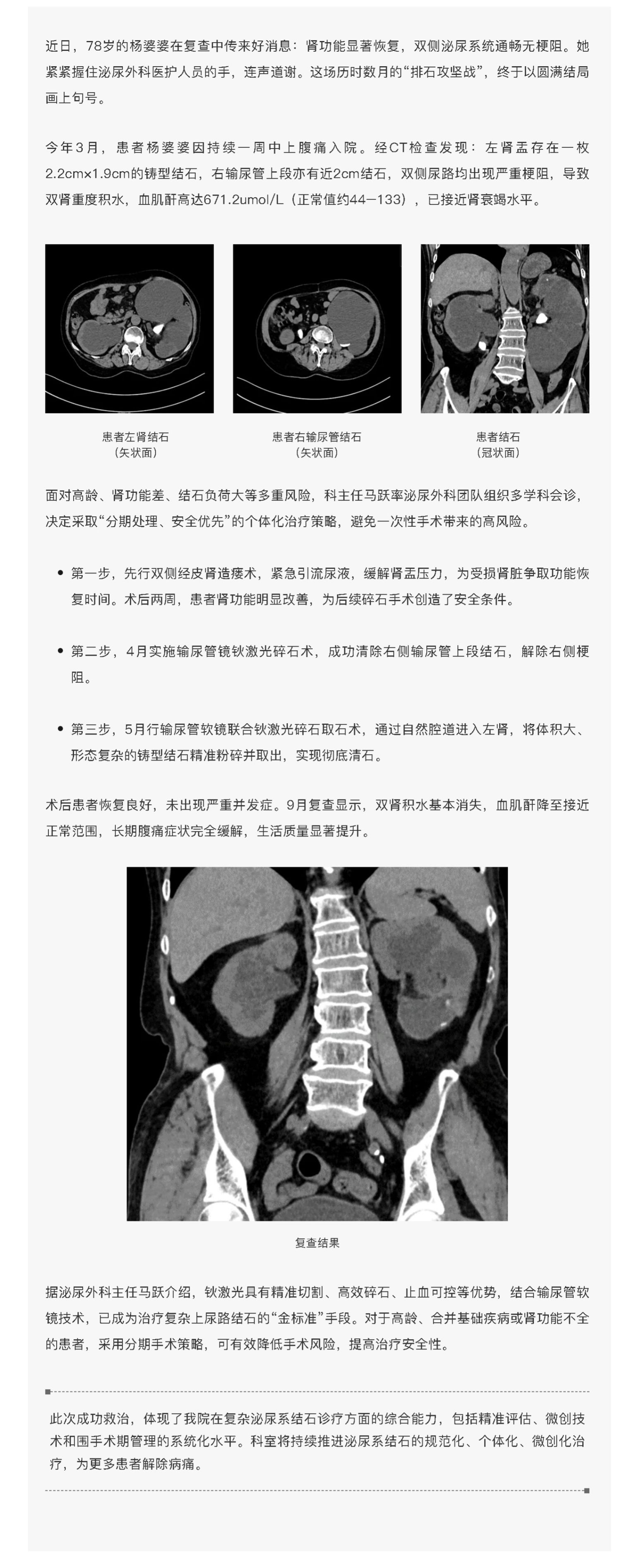 【科医一线】精准微创破“石”局 钬激光助力高龄患者重获新生